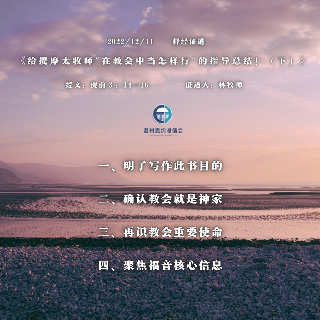2022/12/11 主日录音 | 给提摩太牧师“在教会中当怎样行”的指导总结!(下)(提前3:14-16)