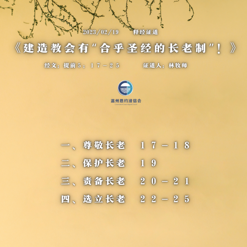 2023/02/19 主日证道 | 建造教会有“合乎圣经的长老制”!(上)(提前5:17-25)