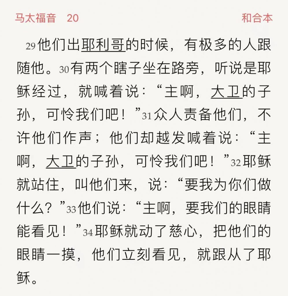 2023/11/26主日预告|呼求大卫的子孙来可怜自己!(太20:29-34)