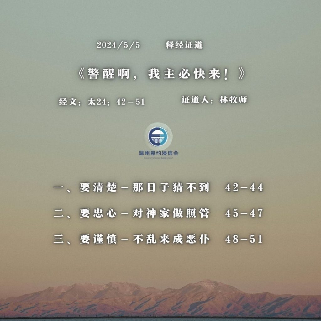 2024/05/05主日预告 | 警醒啊,我主必快来!(太24:42-51)