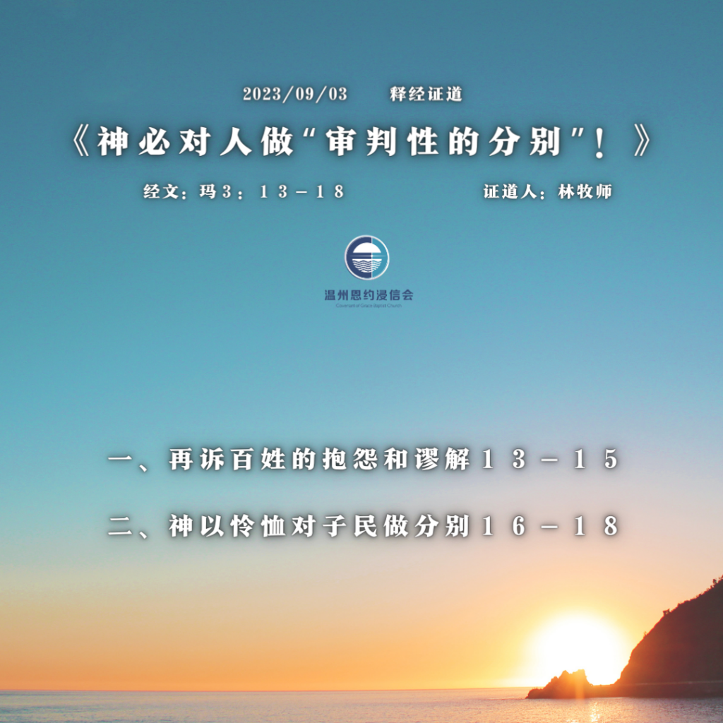 2023/09/03 主日预告 | 神必对人做“审判性的分别”!