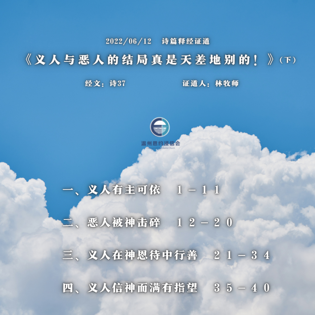 2022/06/12 主日录音 | 《义人与恶人的结局真是天差地别的!》(三)(诗37)