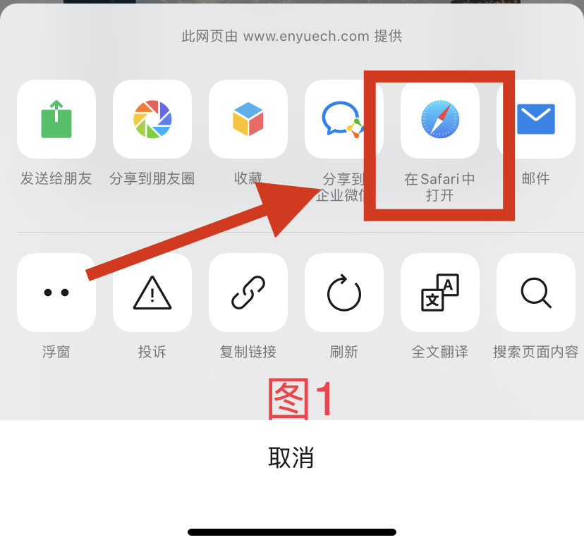 - 接着步骤1最后的地方,点击“在safari 中打开”