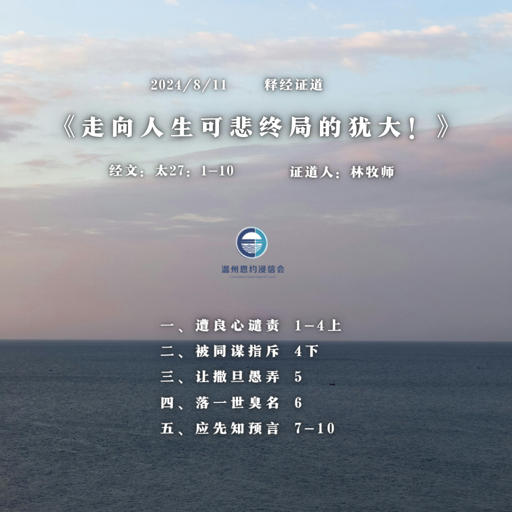 2024/08/11 证道录音 |走向人生可悲终局的犹大!(太27:1-10)