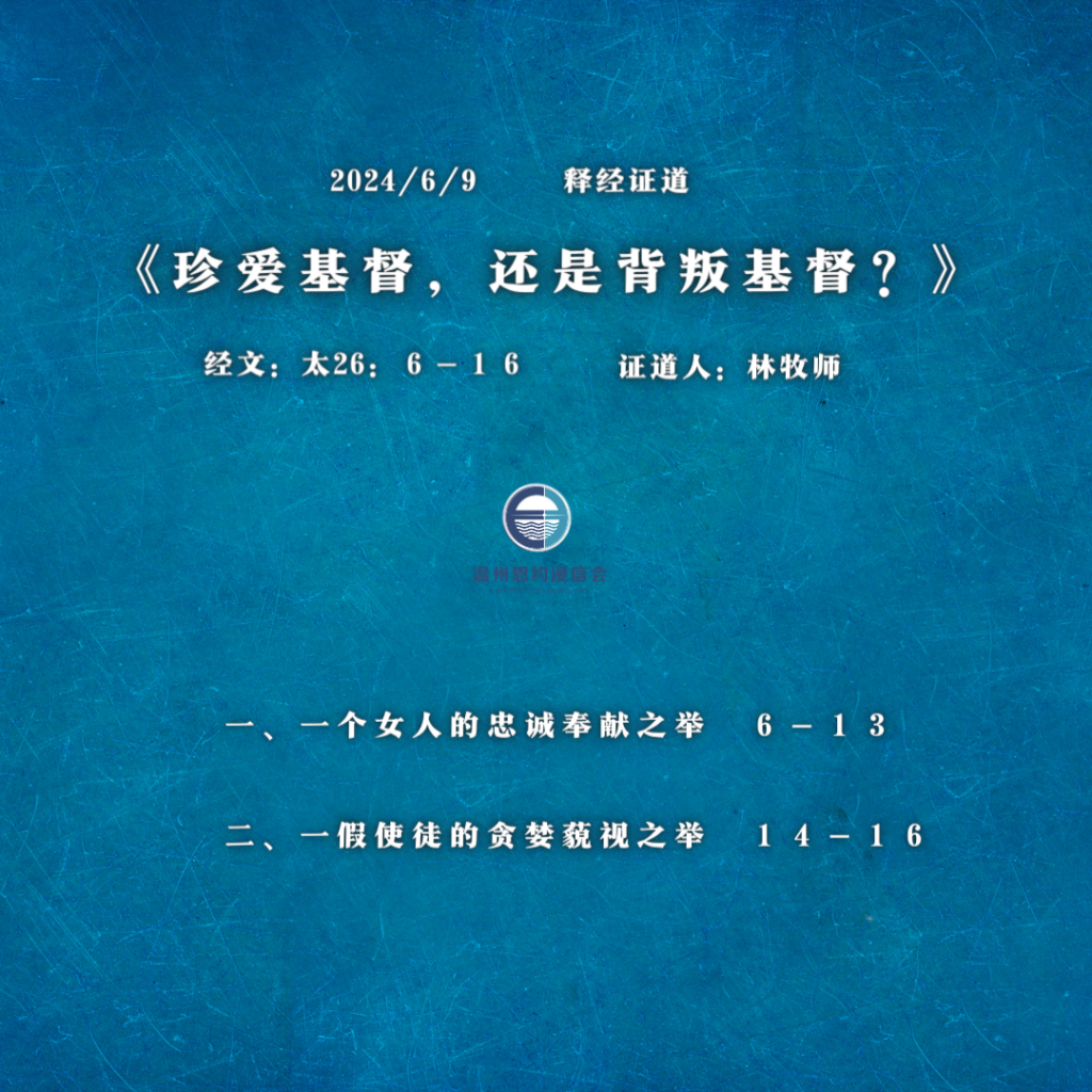 2024/06/09 主日证道 | 珍爱基督,还是背叛基督?(太26:6-16)