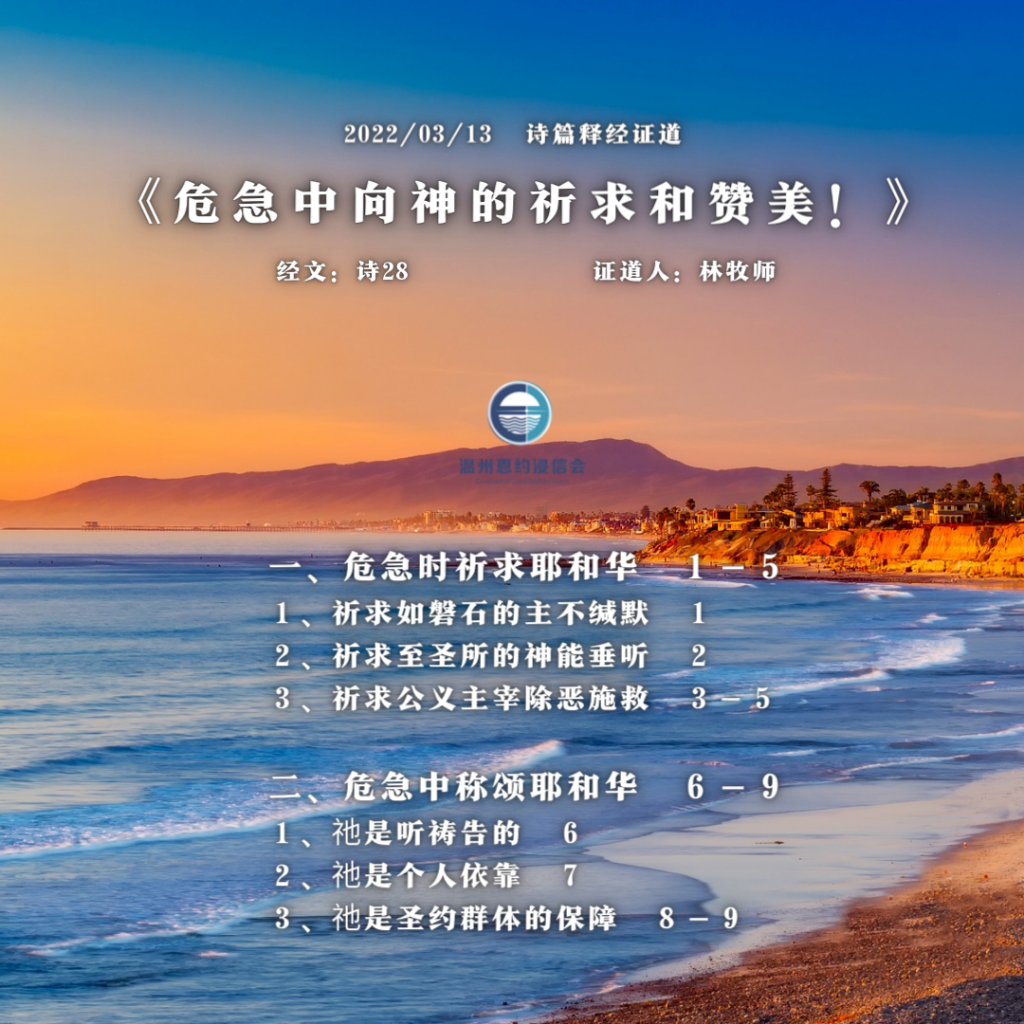 2022/03/13 主日预告 | 危急中向神的祈求和赞美!