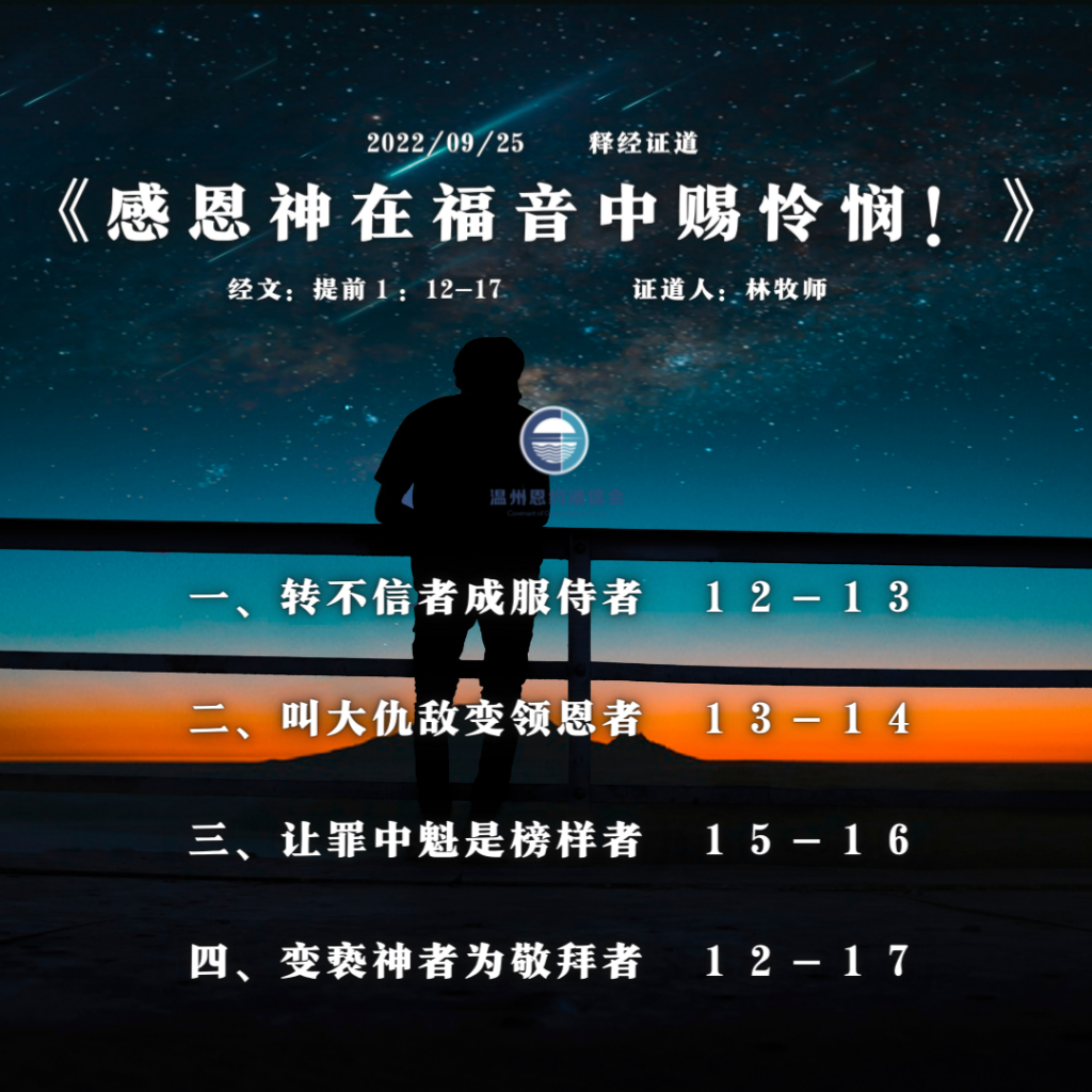 2022/09/25 主日证道 | 感恩神在福音中赐怜悯! (提前1:12-17)
