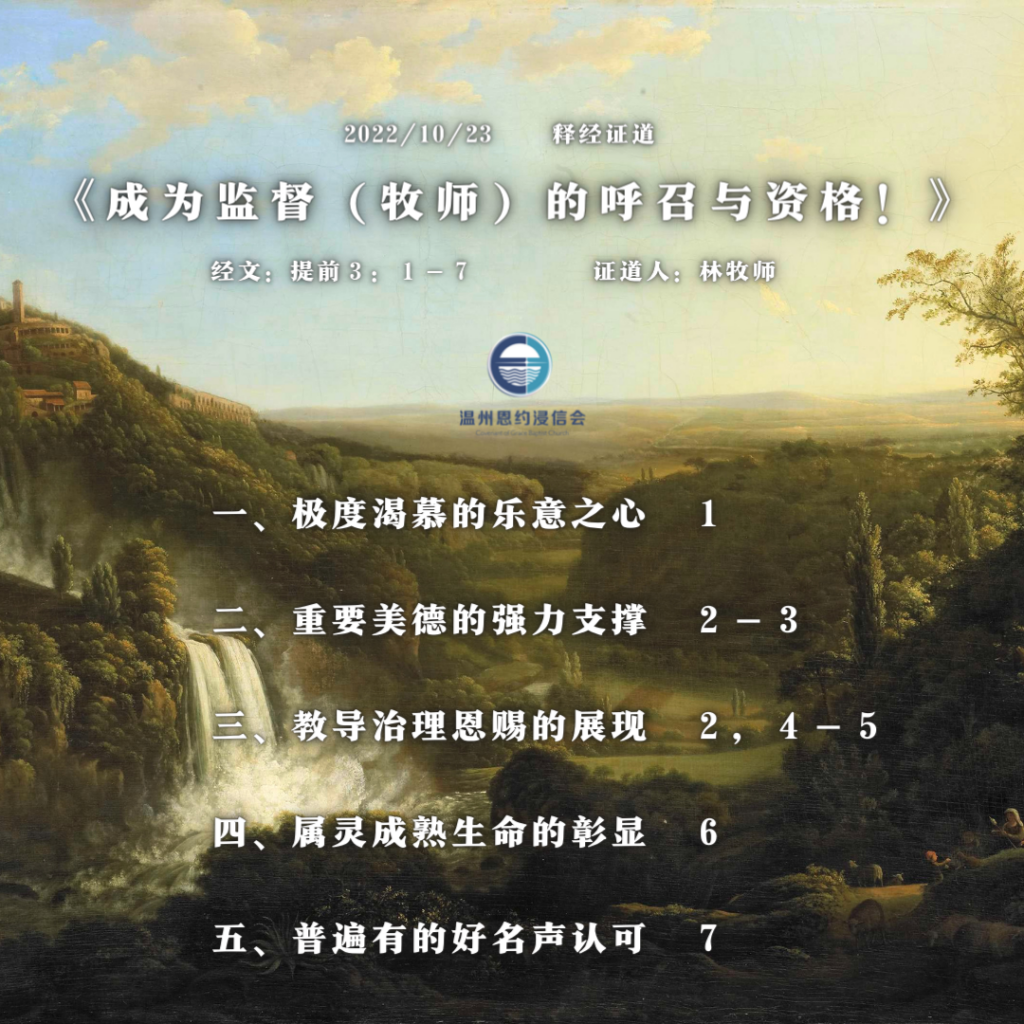 2022/10/23 主日录音 | 成为监督(牧师)的呼召与资格! (一)(提前3:1-7节)
