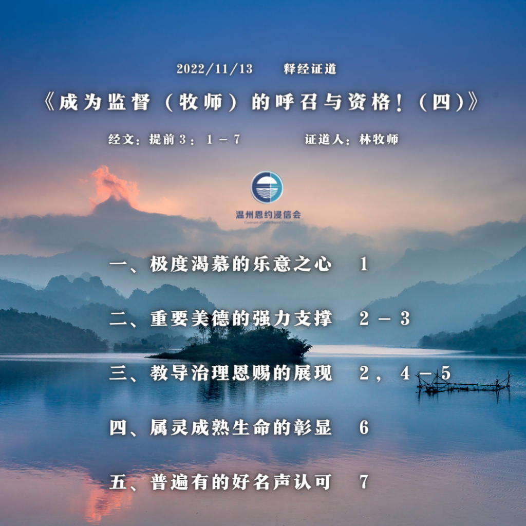 2022/11/13 主日录音| 成为监督(牧师)的呼召与资格!(四)(提前3:1-7)