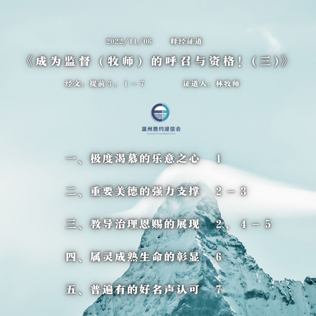 2022/11/06 主日录音 | 《成为监督(牧师)的呼召与资格!(三)》(提前3:1-7)