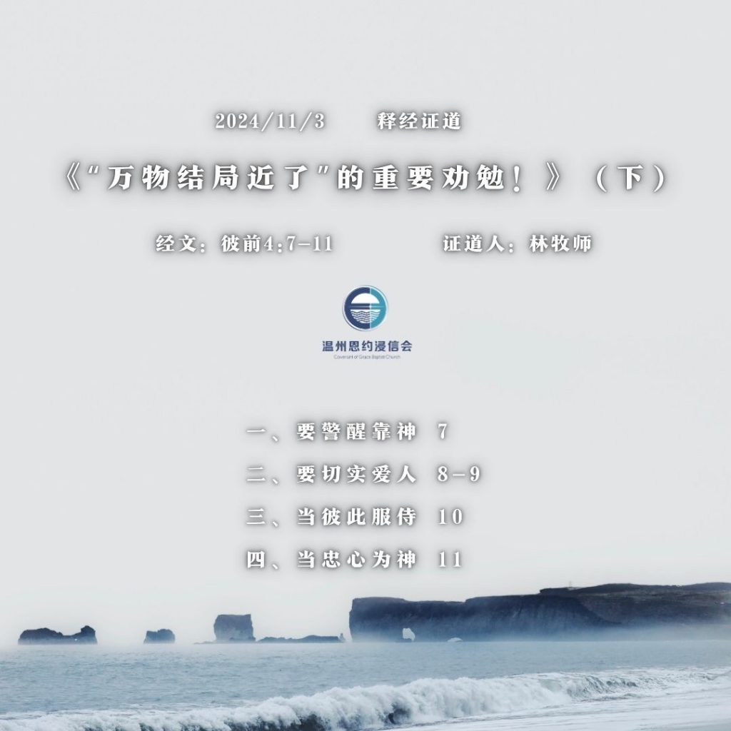 2024/10/27证道录音 | “万物结局近了”的重要劝勉!(彼前4:7-11)