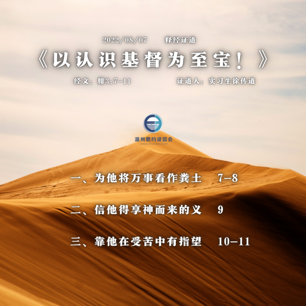 2022/08/07 主日预告 | 以认识基督为至宝!