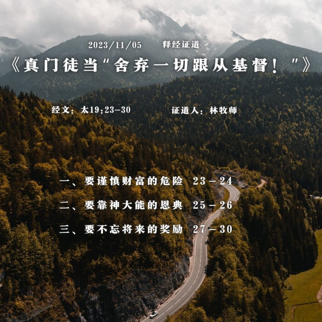 2023/11/5证道录音|真门徒当“舍弃一切跟从基督!”(太19:23-30)